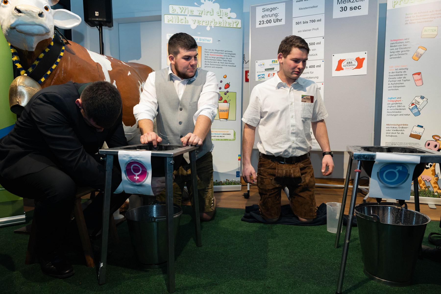 Das Herzstück des traditionellen Fahneneinzugs bildete die junge Generation der landwirtschaftlichen Fachschulen. Mit Stolz und Engagement trugen sie die Fahnen und sorgten für jene Bilder, die seit Jahrzehnten als Symbol für Zukunft, Zusammenhalt und bäuerliche Identität stehen. Besonders die Landjugend Niederösterreich wirkte wieder kräftig mit. So wurden etwa die Milchbar, „Most trifft Wein“-Bereich und der Melkwettbewerb von der Landjugend gestaltet.