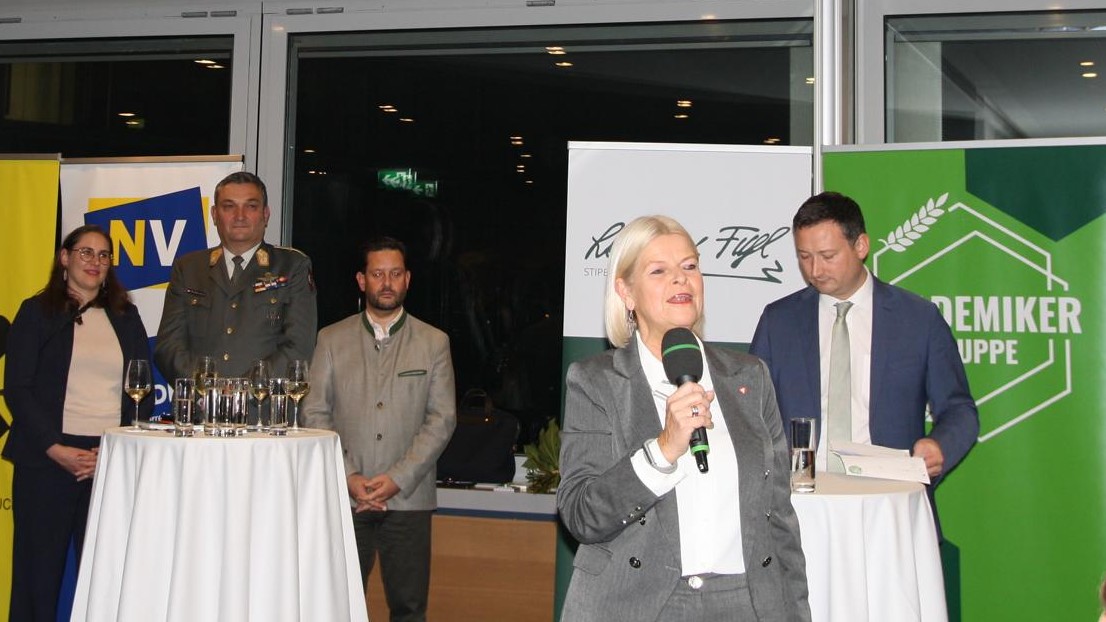 Eröffnet wurde der Abend von Akademikergruppe-Obmann Paul Nemecek und Ehrenpräsidentin Bundesministerin Klaudia Tanner, die in ihrer Eröffnung die Bedeutung von Zusammenhalt, Verantwortung und generationenübergreifendem Dialog hervorhoben. Durch die Anwesenheit von Figl-Nichte Maria Hauer erhielt der Abend eine besondere Würde und Verbundenheit mit dem Vermächtnis Leopold Figls.